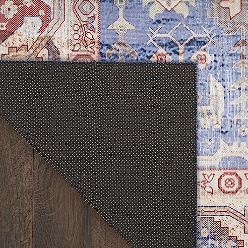Details: Classic style is brought to the modern age with the Vintage Home Collection. Timeless Persian and simple abstract rug designs are vividly printed in a range of rich and muted colors, which are finished with artful distressing that adds instant character to your home. These flatweave rugs are enhanced with a built-in nonslip back that adds safety to hard floors. Choose from a variety of sizes including runner rugs for the kitchen and hallway to standard 5x7 and 6x9 rugs for the living room and bedroom. Add an heirloom look to your room with this Persian-inspired rug from the Vintage Home Collection. Featuring an intricately printed pattern and matching border in a rich blue color that beautifully complements traditional, boho, and farmhouse decor. This vintage style rug includes a non-skid backing that protects you and your loved ones from slipping on hard floors.