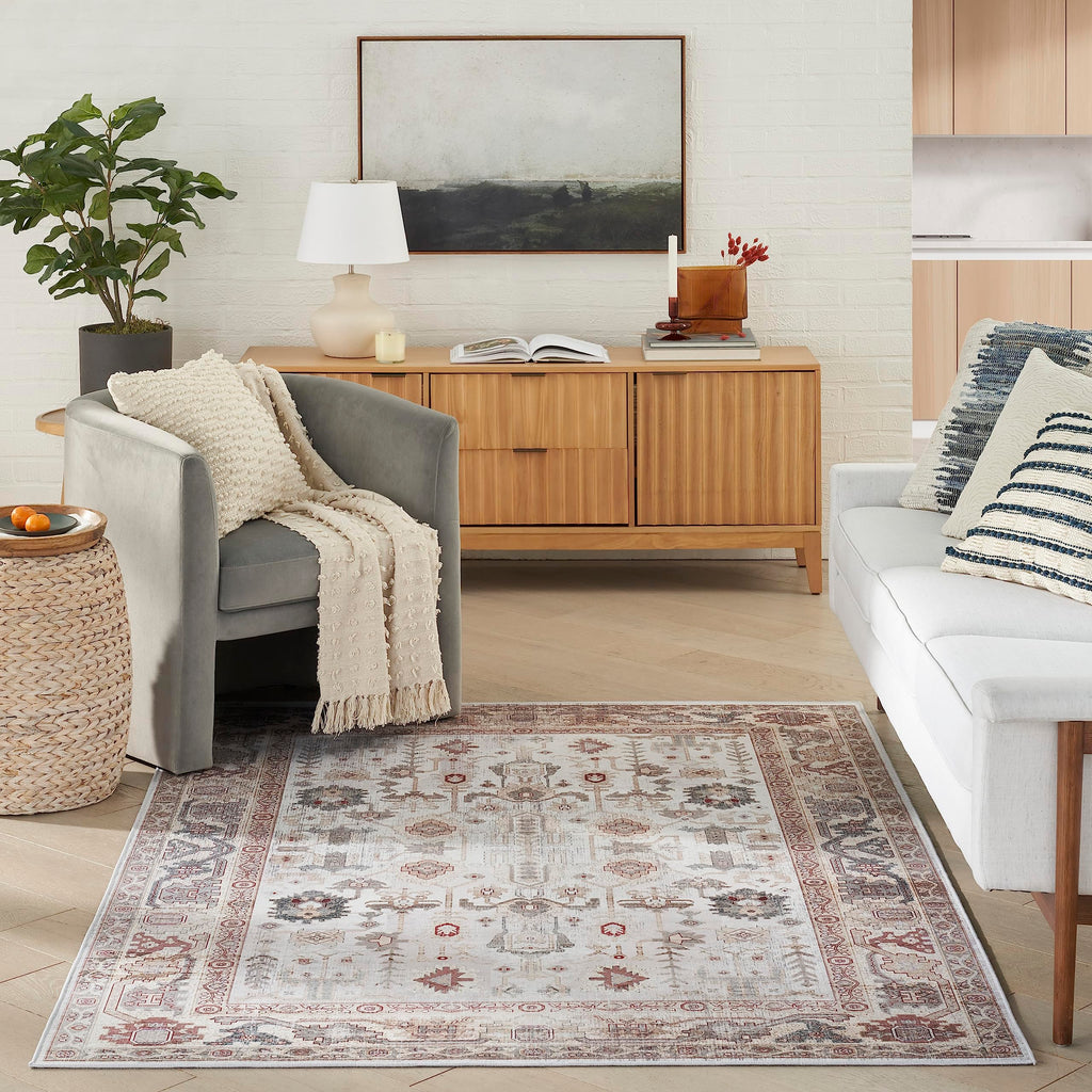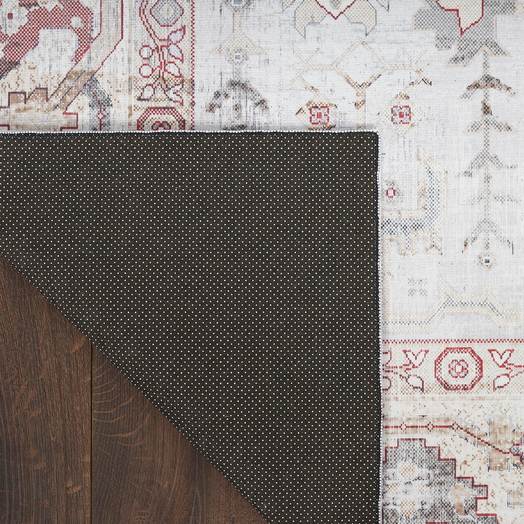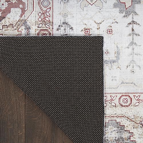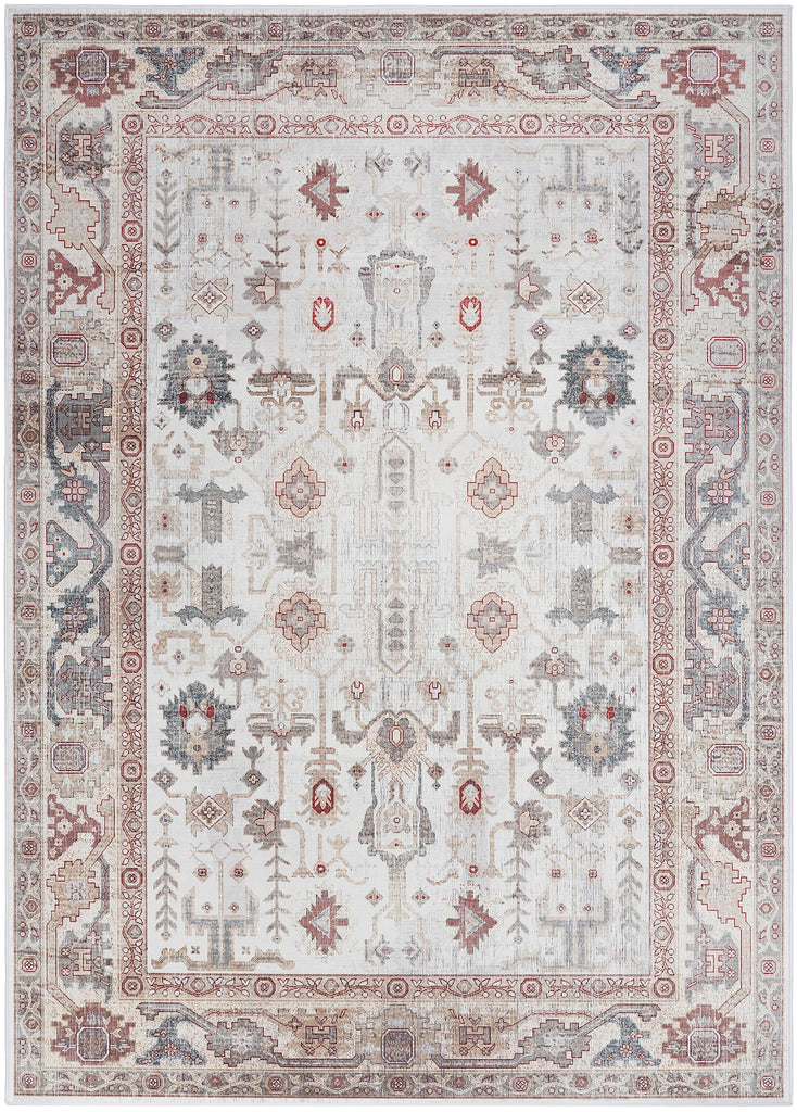 Details: Classic style is brought to the modern age with the Vintage Home Collection. Timeless Persian and simple abstract rug designs are vividly printed in a range of rich and muted colors, which are finished with artful distressing that adds instant character to your home. These flatweave rugs are enhanced with a built-in nonslip back that adds safety to hard floors. Choose from a variety of sizes including runner rugs for the kitchen and hallway to standard 5x7 and 6x9 rugs for the living room and bedroom. Add an heirloom look to your room with this Persian-inspired rug from the Vintage Home Collection. Featuring an intricately printed pattern and matching border in a soft ivory color that beautifully complements traditional, boho, and farmhouse decor. This vintage style rug includes a non-skid backing that protects you and your loved ones from slipping on hard floors.