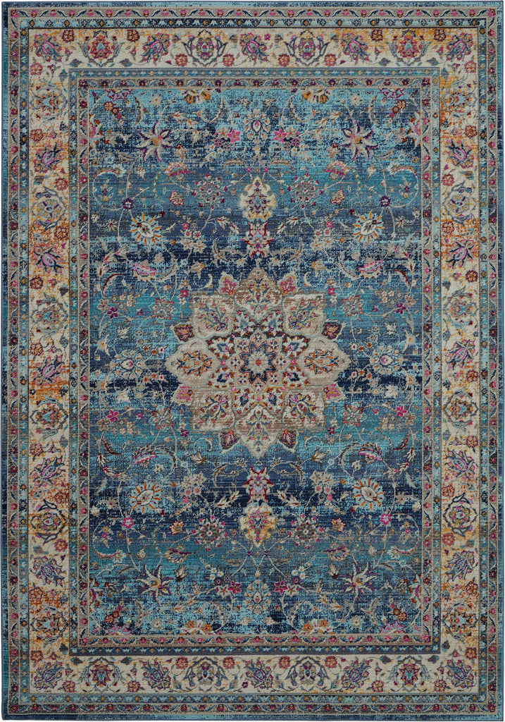 - Glossy distressed pile for vintage Oriental rug feel