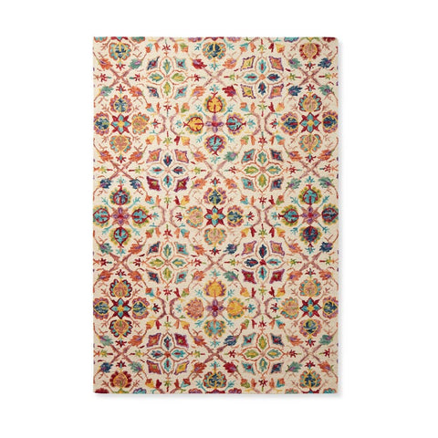 Details: A graceful Old World blossom-and-bloom design gets a contemporary makeover, in an elegant cream field with repeating multicolor patterns. Hand tufted into a 100% wool loop pile for an exceptional look and feel, this Vibrant area rug from Nourison engages from every angle.Features : Transitional multicolored floral patterns on an ivory fieldExcellent durability even under heavy foot trafficRug pad recommendedHand-crafted rugs are unique works of art and no two are exactly alike. Colors may vary slightly.Due to the detailed construction of our rugs, both handmade and machine-made, sizes may vary by up to three inches in width or length.All-natural fibersHandcraftedSpecifications : Material : 100% Wool Backing: CottonProduct Color : IvoryProduct Dimensions : 27" x 120" x .50"Size : 2'3" x 10'