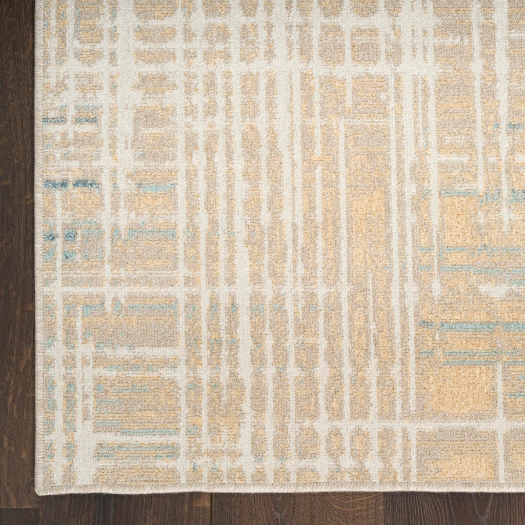 Details: Bring a free-spirited feeling to your favorite spaces with the Washable Decor Collection. These washable rugs add unique pops of color and pattern, which are infused with a silky shimmer for an eye-catching finish. Made from 100% polyester in a lightweight, flatweave construction and soft texture. OEKO-TEX Certified non-toxic. Create a sleek, put-together look in any room with this modern beige and blue rug from the Washable Décor collection. The abstract pattern invites a sense of movement, which is enhanced with a silky sheen that captures and reflects light to create two distinctive looks in one rug. This low-maintenance, machine washable rug is ideal for use in a variety of rooms, including the bathroom, kitchen, living room, and bedroom. OEKO-TEX Certified.