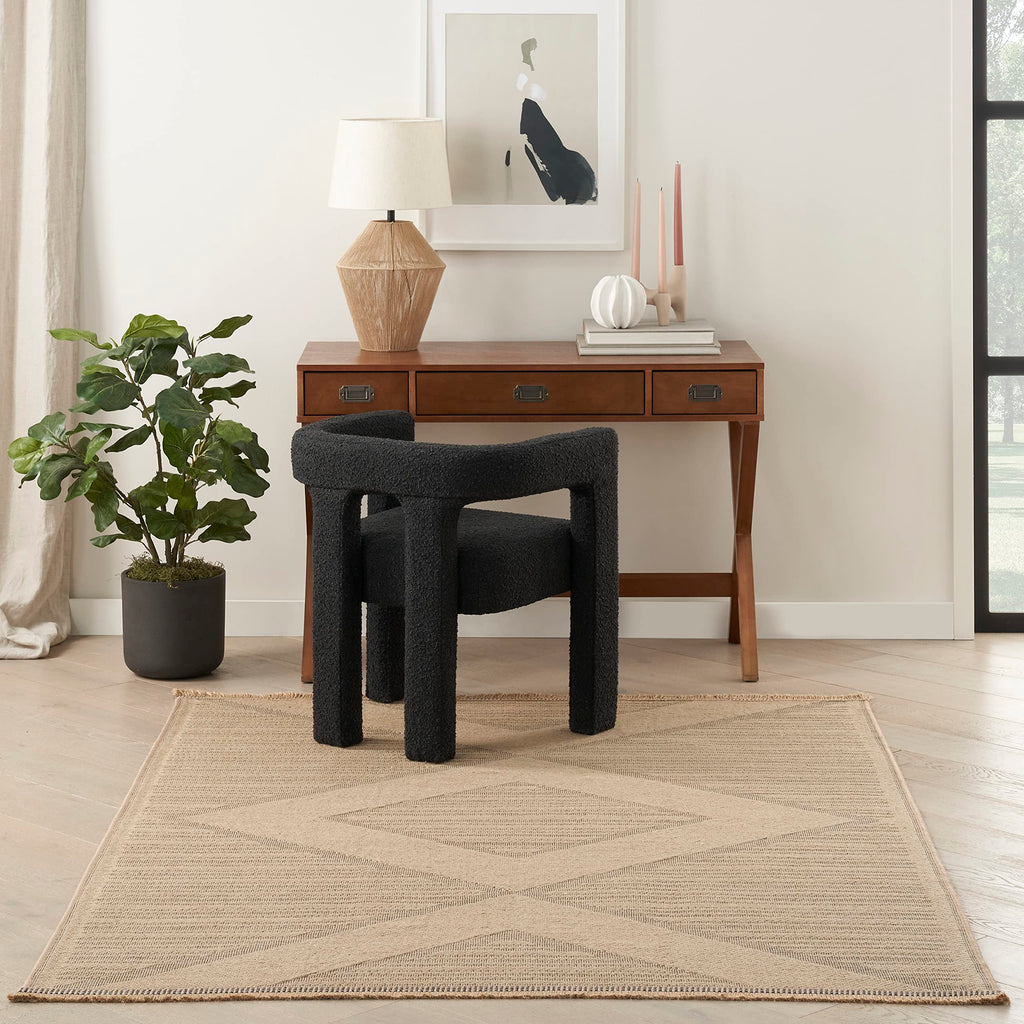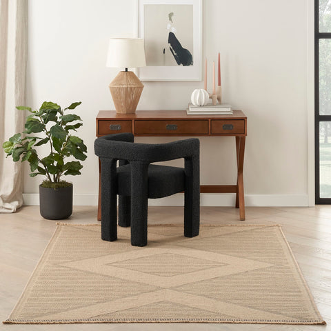 Details: The Washable Jute rug collection combines the rustic charm of natural fibers with the sophisticated techniques of modern rug weaving. These natural jute rugs are reinforced with a blend of cotton and poly-acrylic yarns to simplify cleaning – just toss into your washing machine on cold and line dry. With a non-slip back that adds an extra layer of safety on hardwood floors, these geometric rugs are great in busy areas of your home including the kitchen, living room, entryway, and dining room. Includes a short fringe at both ends. With this geometric rug from the Washable Jute collection, you can have sophisticated style that’s also ultra-easy to clean. This modern flat weave design features a chic center diamond in soft beige, which is finished at both ends with a short, twisted fringe. The natural jute fibers are reinforced with a blend of cotton and synthetic yarns that allow for machine washing. Simply wash on a cold cycle and line dry.
