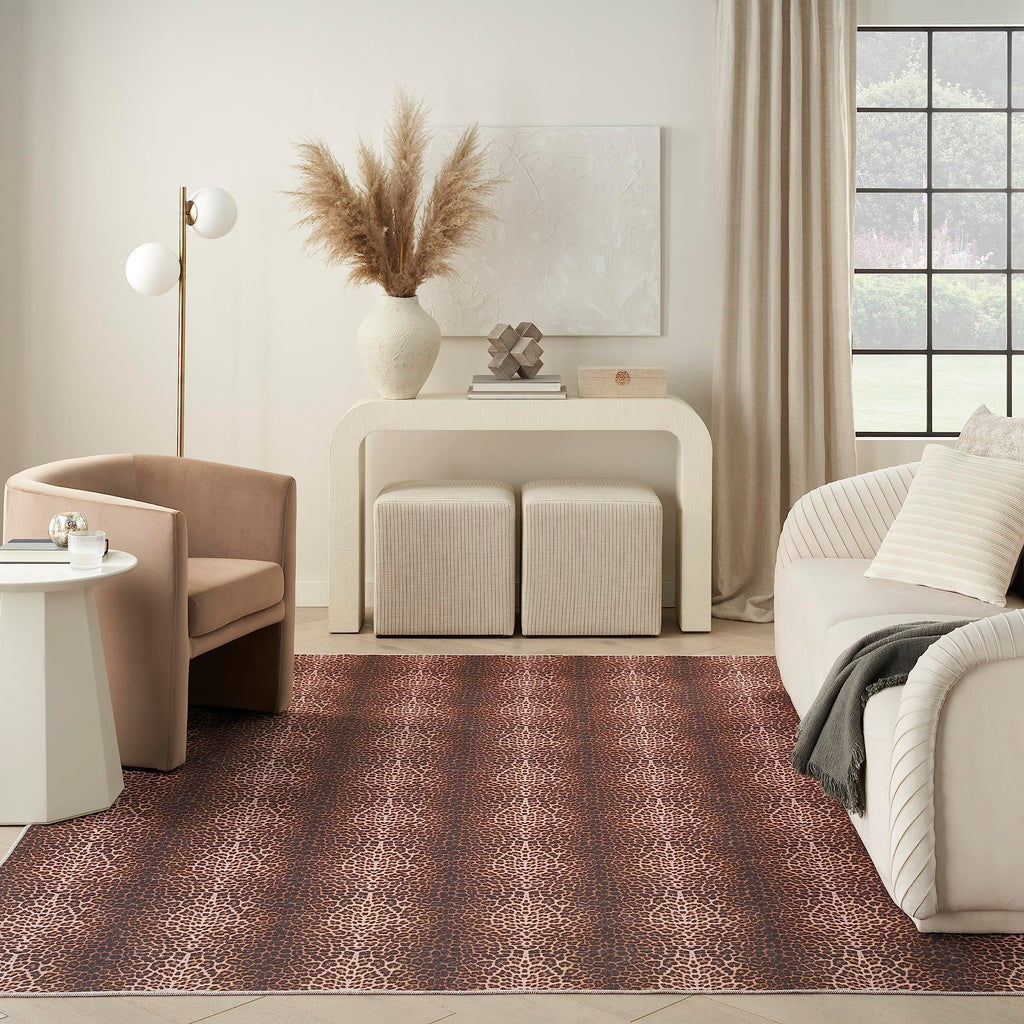 Details: The Nourison Washables rug collection is a practical and stylish addition to any home. Each design is made with a recycled cotton non-slip back for added peace of mind, especially in areas prone to trip hazards. Choose from a variety of chic designs, including abstract, geometric, animal print, and floral rugs to effortlessly elevate your décor. Machine-made from poly-cotton blended fibers in a flat weave style. Add a touch of wild style to your decor with this leopard print Nourison Washables rug. This rug offers a unique twist on the classic animal print with a vertical column design that creates a bold and modern statement in any space. Made with durable, washable materials, this rug includes a non-slip backing for added safety.