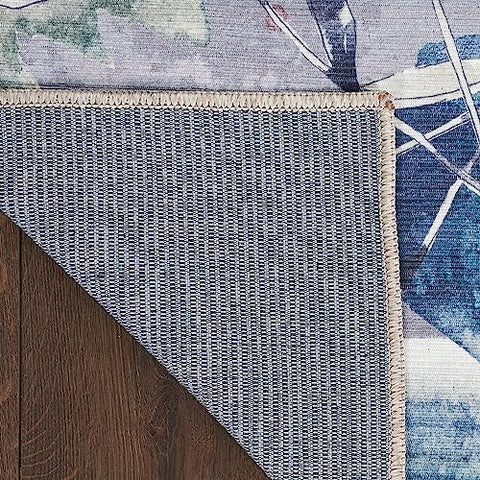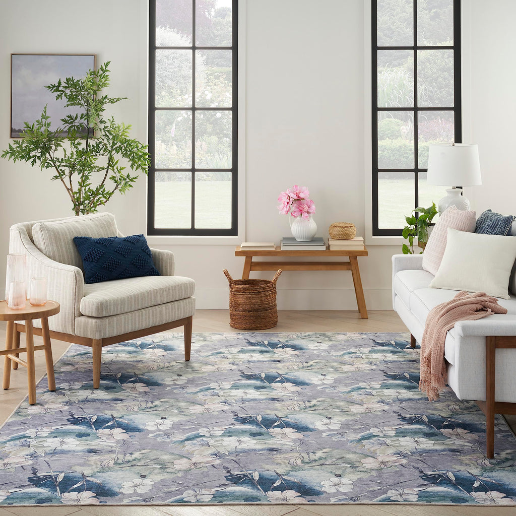 Details: The Nourison Washables rug collection is a practical and stylish addition to any home. Each design is made with a recycled cotton non-slip back for added peace of mind, especially in areas prone to trip hazards. Choose from a variety of chic designs, including abstract, geometric, animal print, and floral rugs to effortlessly elevate your décor. Machine-made from poly-cotton blended fibers in a flat weave style. Add a touch of artistry to your floors with this Nourison Washables floral rug. Featuring a beautiful floral pattern with a hand-drawn look set against an abstract brushstroke ground in shades of blue and grey, this washable rug is a unique addition to your space. Made from durable materials, this rug is easy to clean and includes a non-slip backing for added safety.
