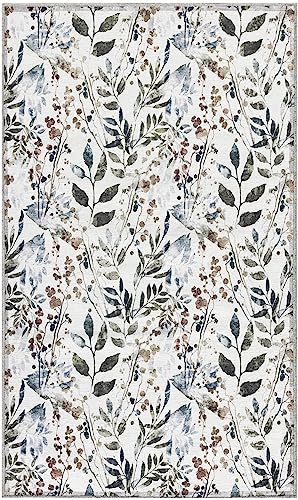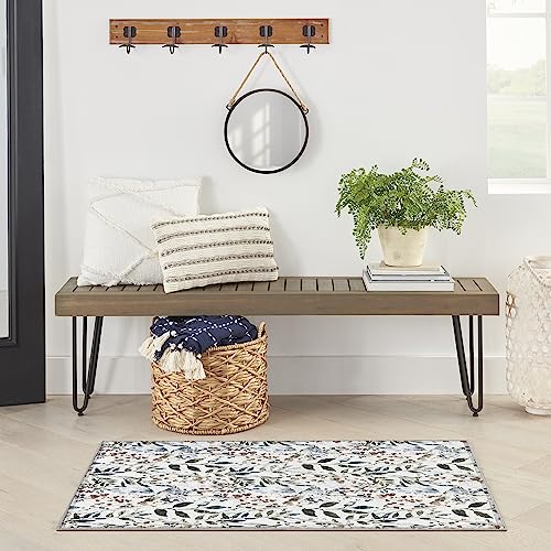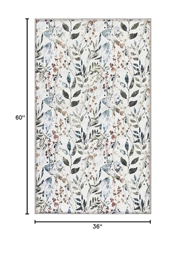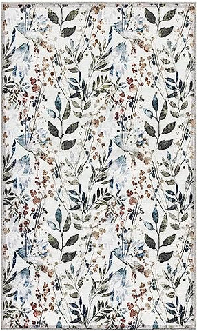 Details: The Nourison Washables rug collection is a practical and stylish addition to any home. Each design is made with a recycled cotton non-slip back for added peace of mind, especially in areas prone to trip hazards. Choose from a variety of chic designs, including abstract, geometric, animal print, and floral rugs to effortlessly elevate your décor. Machine-made from poly-cotton blended fibers in a flat weave style. Add a touch of artistic elegance to your home with this ivory Nourison Washables floral rug. This rug features a beautiful floral silhouette design in a soft watercolor style, creating a serene and calming atmosphere in any space. Made from durable materials, this rug is easy to clean and includes a non-slip backing for added safety.