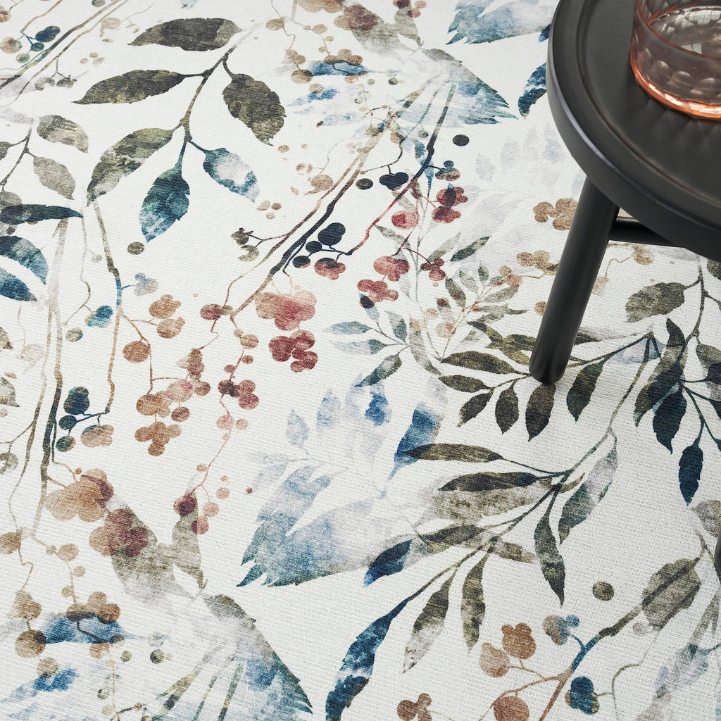 Details: The Nourison Washables rug collection is a practical and stylish addition to any home. Each design is made with a recycled cotton non-slip back for added peace of mind, especially in areas prone to trip hazards. Choose from a variety of chic designs, including abstract, geometric, animal print, and floral rugs to effortlessly elevate your décor. Machine-made from poly-cotton blended fibers in a flat weave style. Add a touch of artistic elegance to your home with this ivory Nourison Washables floral rug. This rug features a beautiful floral silhouette design in a soft watercolor style, creating a serene and calming atmosphere in any space. Made from durable materials, this rug is easy to clean and includes a non-slip backing for added safety.