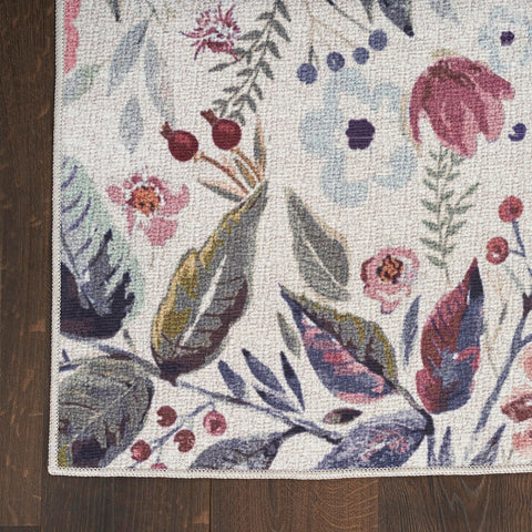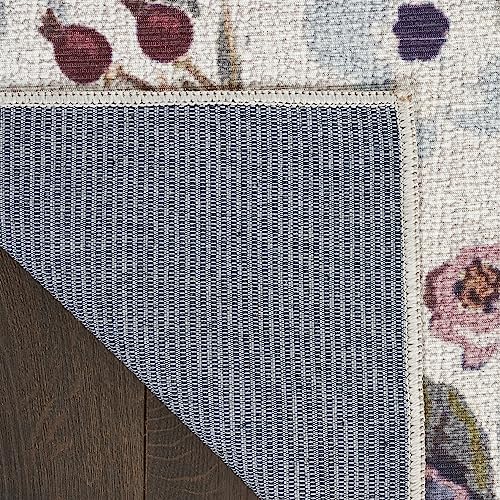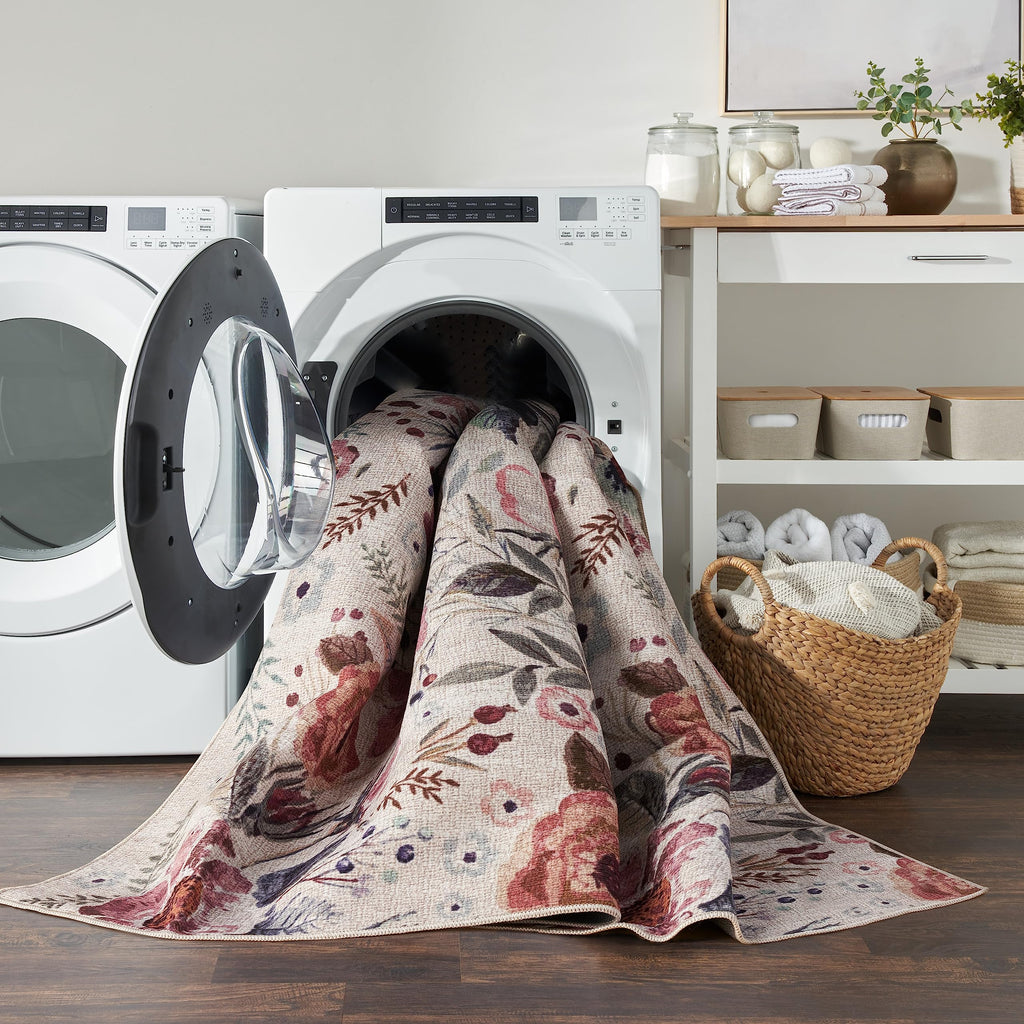 Details: The Nourison Washables rug collection is a practical and stylish addition to any home. Each design is made with a recycled cotton non-slip back for added peace of mind, especially in areas prone to trip hazards. Choose from a variety of chic designs, including abstract, geometric, animal print, and floral rugs to effortlessly elevate your décor. Machine-made from poly-cotton blended fibers in a flat weave style. Add vintage charm to your home with this pink and ivory Nourison Washables floral rug. The oversized watercolor-inspired pattern channels a farmhouse vibe, making it perfect for adding warmth to any space. Made from durable materials, this washable rug features a non-slip backing for added safety on hard floors.