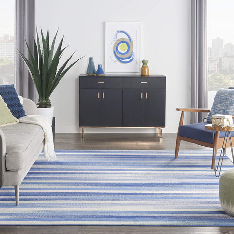 - Blue and ivory multicolor palette creates a sophisticated foundation for contemporary décor