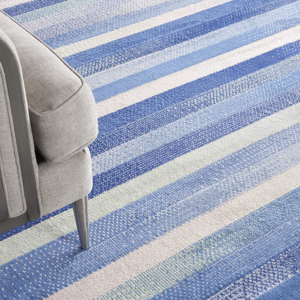 - Modern striped area rug with artistically inspired half tones