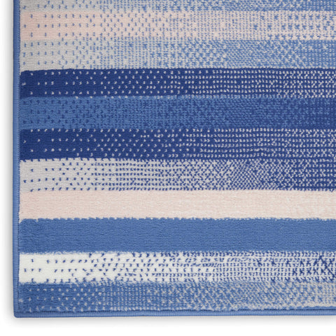 Details: In true bohemian style, the Whimsicle Collection boasts an eclectic mix of tribal inspired, geometric, and classic floral motifs. Purposefully distressed vintage patinas in neutral, of-the-moment palettes make any Whimsicle Collection rug a versatile foundation for any style of decor. These expertly crafted low-profile area rugs are machine made of soft polyester for a seamless fit in your living room, bedroom, dining room, or home office. This modern area rug from the Whimsicle Collection adds a unique touch to your surroundings. An artistically inspired half tone technique in blue and ivory multicolor creates a sophisticated foundation for contemporary styles of decor. Machine made of soft polyester with a low profile for a seamless fit under your sofa, dining room table, or near areas that need door clearance.